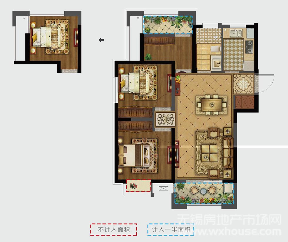 3室2厅2卫建筑面积约:115.0平米