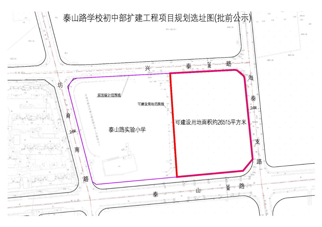 泰山路学校初中部扩建工程建设项目用地预审与选址意见书批前公示