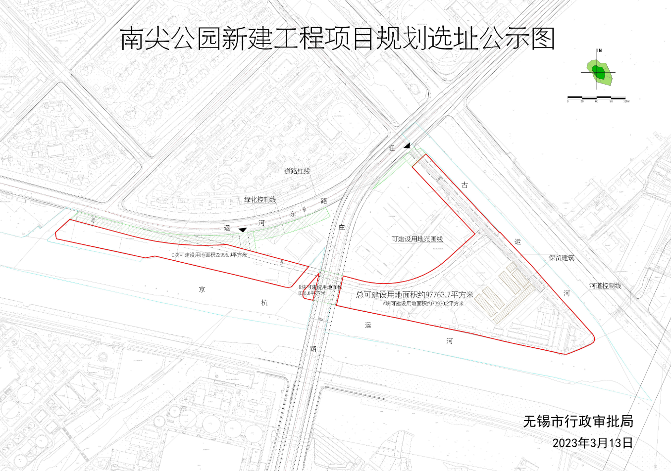 该项目位于梁溪区运河东路下甸桥港区,用地范围四至:东至古运河、南至京杭运河、西至用地边界、北至运河东路,总可建设用地面积约97763.7平方米。用地性质为综合公园。建设单位为无锡市北盛投资发展有限公司。(详见附图)