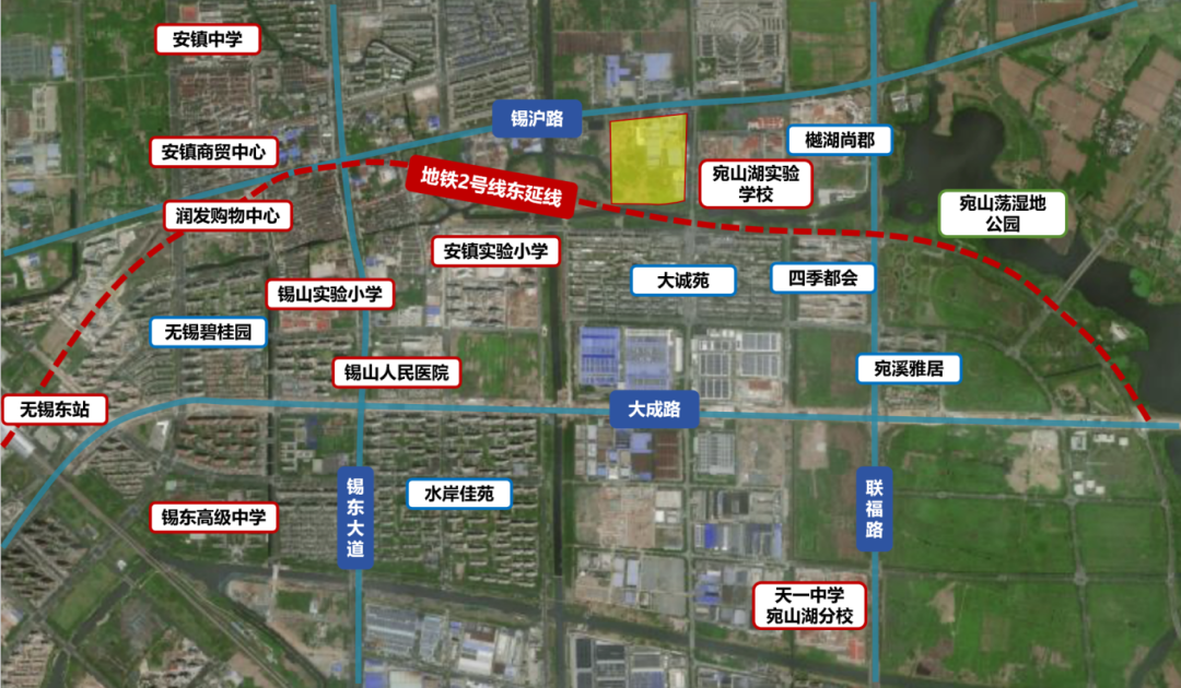 2024年11月,宛山湖实验学校北地块(XDG-2024-52号地块)成交,楼面价9696元/㎡,由无锡宛湖投资发展有限公司竞得。