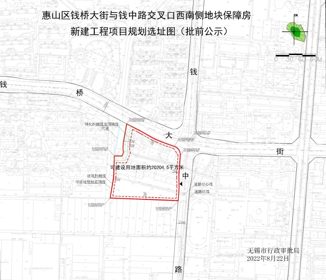 附:惠山区钱桥大街与钱中路交叉口西南侧地块保障房新建工程项目规划选址图(批前公示)