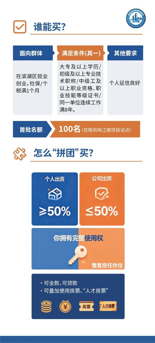 双重补贴,一步安家!留在滨湖,拿最高40万人才购房券,再享共有产权“低门槛”置业!买房“拼团”新模式,十年内“拿回”全部产权!一图全读懂。