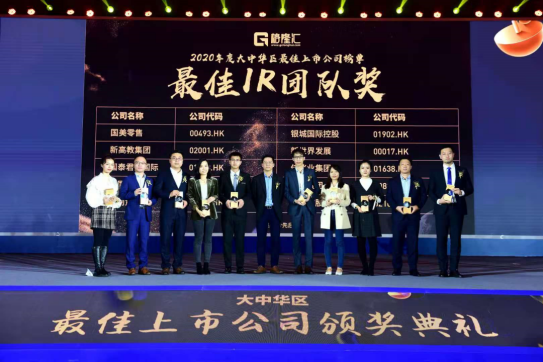 11月16日晚,银城国际(股票代码:1902.HK)在格隆汇举办的“2020大中华区最佳上市公司评选”的颁奖典礼上,荣获“年度最佳IR团队奖”,标志着投资者高度认可公司的整体战略,以及在合规、透明、高效的信息披露方面的优秀表现。