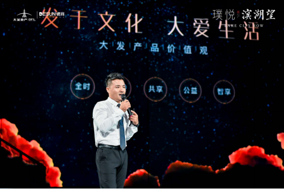 发布会现场, 大发地产环沪地区营销负责人梁骏先生,为来宾讲述大发地产24载不凡征程,从建筑巧匠到情景营造大师,由“地产开发商”到“悦居生活服务商”,不仅是打造“住得安心”的房子,更是为每位业主构筑“过得开心”的理想生活范本。在步履不停之中,将对美好生活的热爱镌刻在24载时光里。