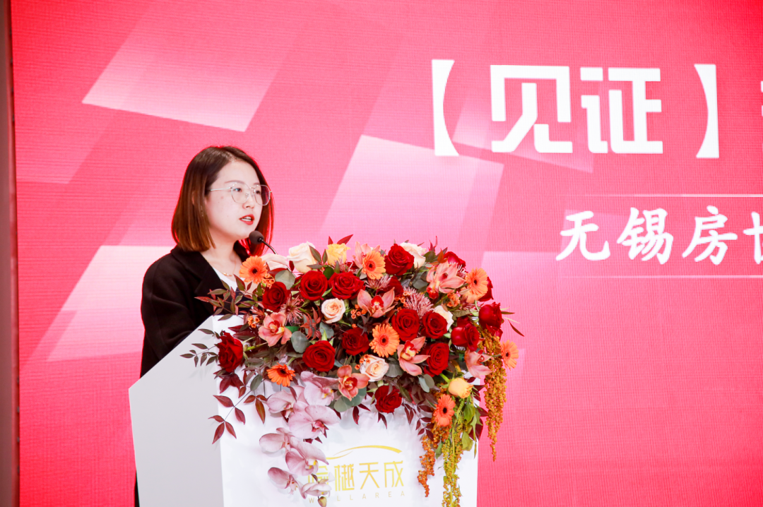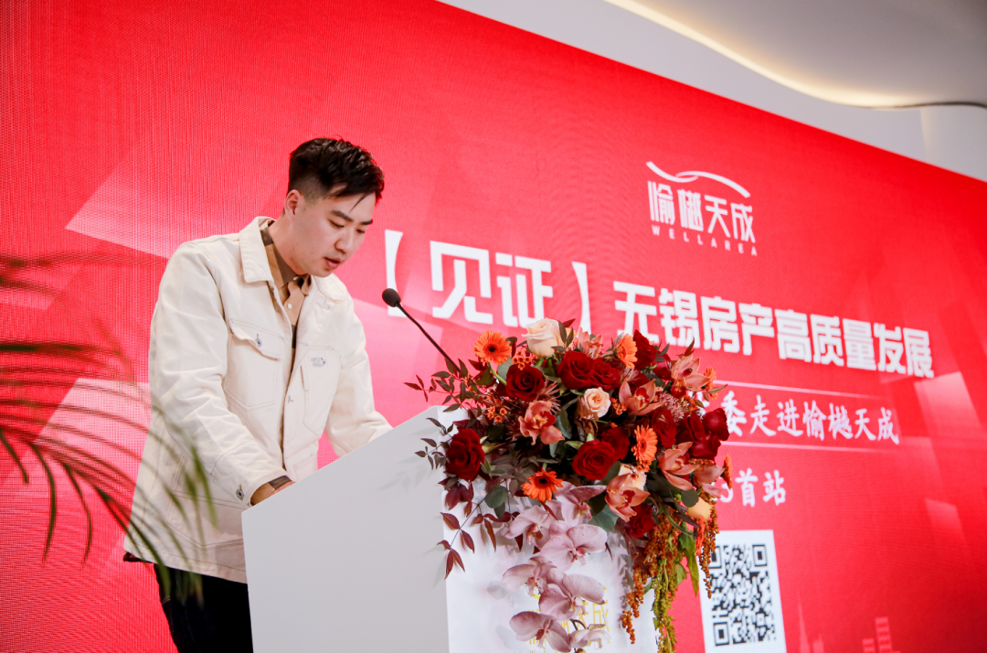活动现场,无锡房地产业协会会长金荣庆致辞,随后愉樾天成营销负责人潘总发表讲话。