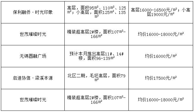 像世茂璀璨时光、圆融广场二期这样均价还保持在16000-17000元/㎡的楼盘真真是不多了。此外,区域内还有少量在售产品均价在20000元/㎡以内的楼盘,比如绿地·西水晶舍、启迪协信·梁溪本源、保利融侨·时光印象。准备下手的置业客户可要抓紧了。