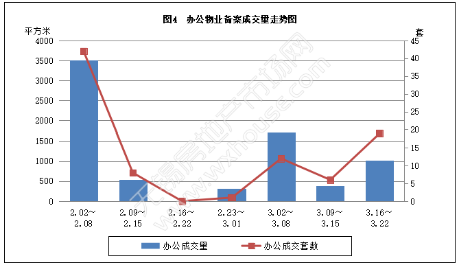 本周办公物业备案成交量和套数分析