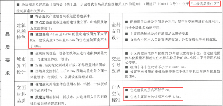 3、地块按照“二级高品质住区”打造,建筑高度≥10m且≤24m的住宅建筑面宽不大于80m,建筑高度>24m且≤40m的住宅建筑面宽不大于60m。