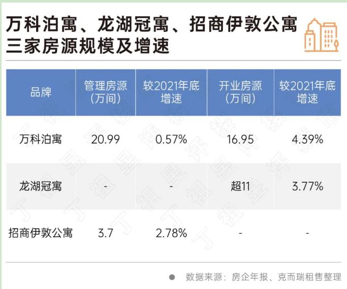 截至2022年上半年,万科泊寓累计开业16.95万间,管理房源20.99万间,上半年共新获取10个项目,房间数9674间,开业规模较2021年底增长4.39%。龙湖冠寓开业规模超11万间,较2021年底增长3.77%,招商伊敦公寓管理规模为3.7万间,较2021年底增长2.78%。经历了早期跑马圈地的规模扩张后,各家业绩每年都开始保持稳定增长趋势。