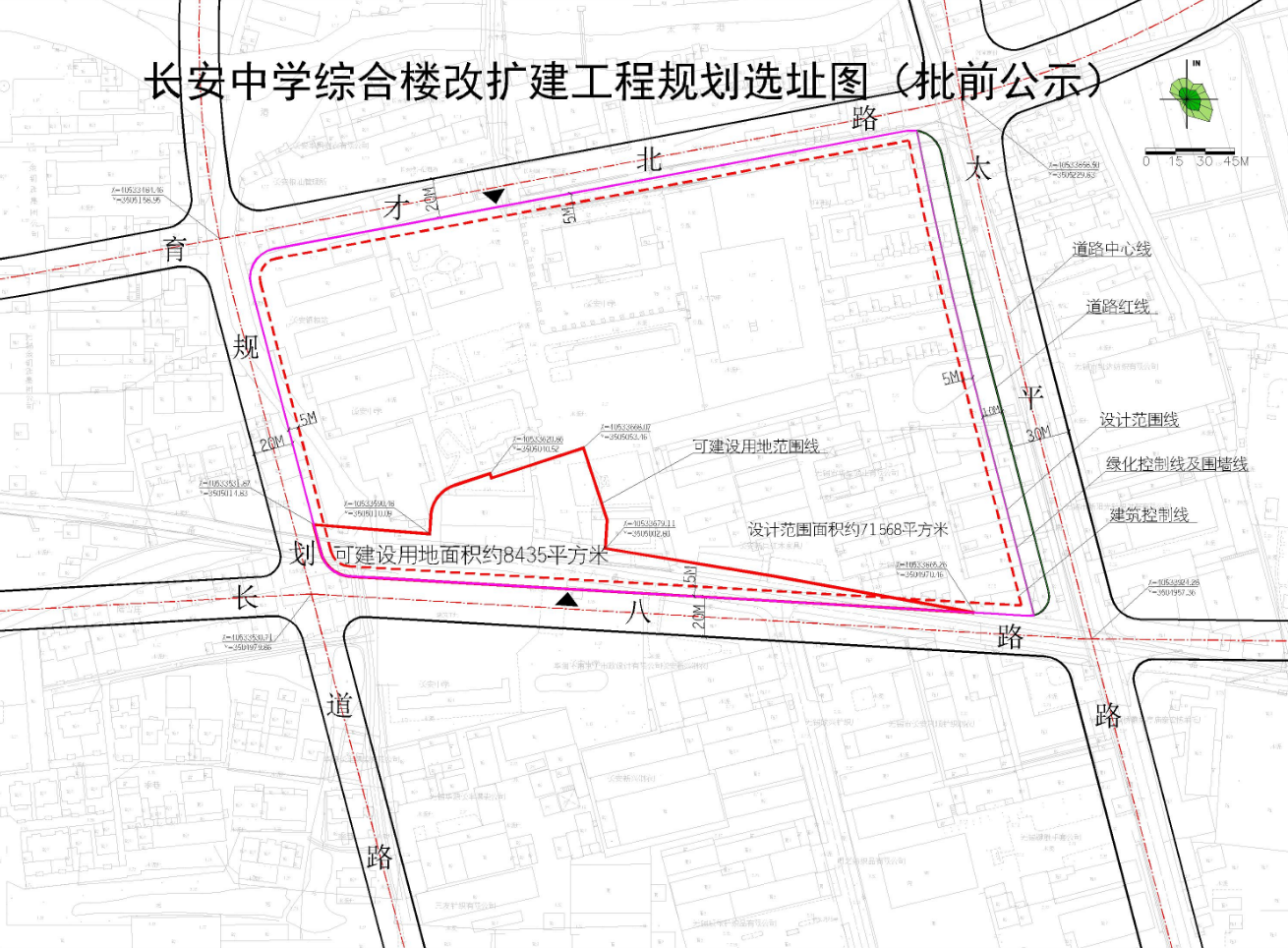 附:长安中学综合楼改扩建工程规划选址图(批前公示)