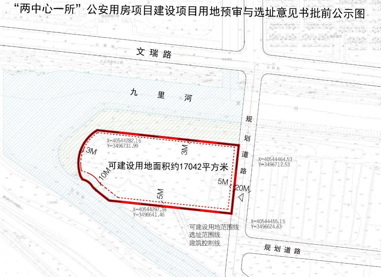 附:“两中心一所”公安用房项目建设项目用地预审与选址意见书批前公示图