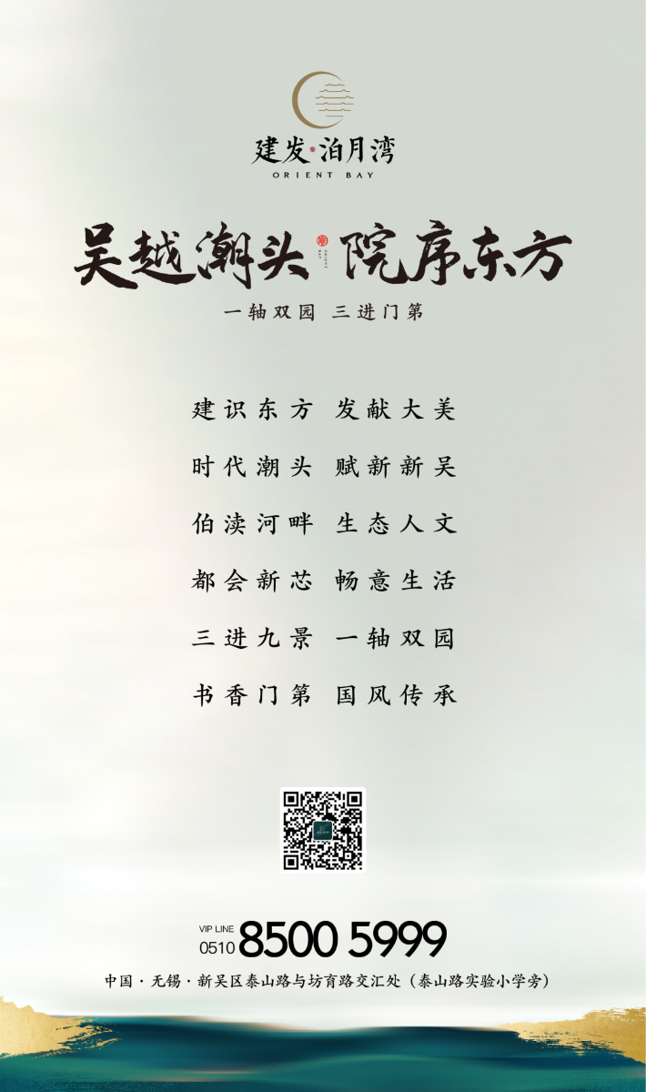 无锡先声的精神核心,是传承与赋新。建发泊月湾,由建发房产全力打造,体现着建发房产的深厚开发实力,也投射着前沿的新中式人居理念。
