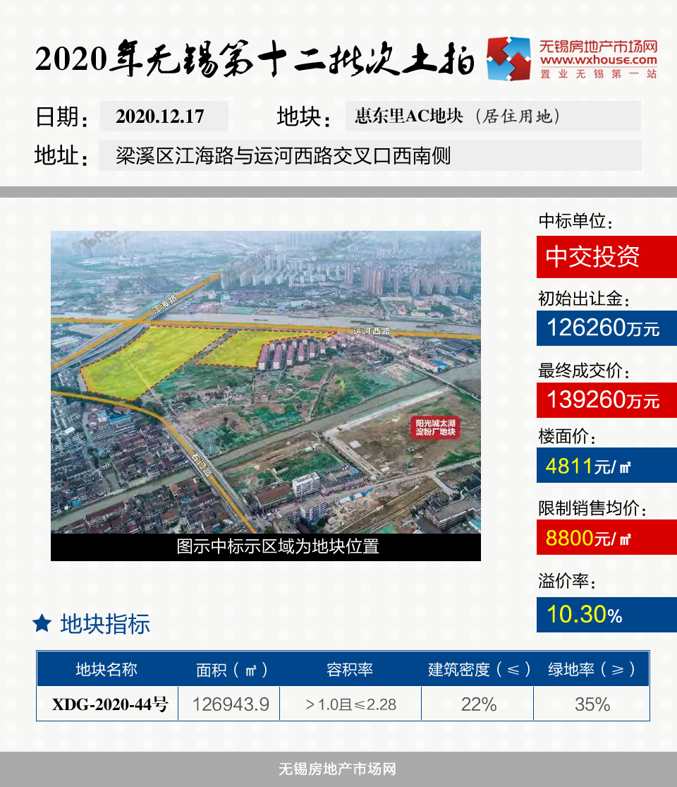 惠东里AC地块(XDG-2020-44号地块)——中交投资有限公司——楼面价:4811.49元/平方米