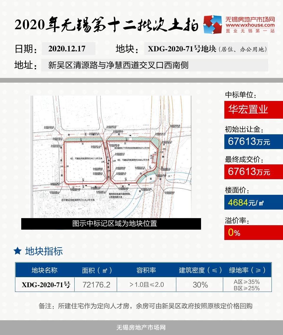 XDG-2020-71号地块——华宏置业(无锡)有限公司——楼面价4683.88元/平方米