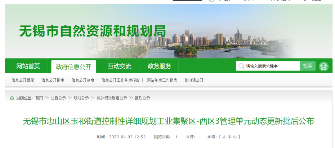 01、无锡市惠山区玉祁街道控制性详细规划工业集聚区-西区3管理单元动态更新批后公布