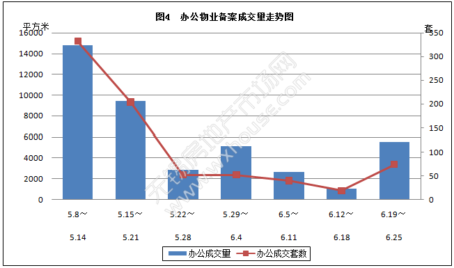 本周办公物业备案成交量和套数分析