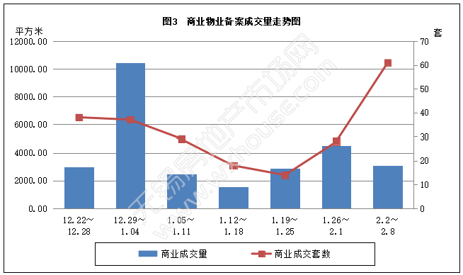 本周商业物业备案成交面积为0.31万平方米,环比减幅31.12%;备案成交套数为61套,环比增加33套。