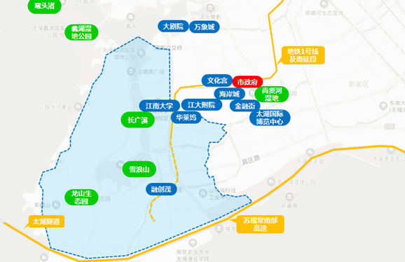 而其中,最具有地产开发价值的,只有雪浪山、太湖、蠡湖、惠山、古运河和马山,它们无疑是现在无锡最“贵”的地方。