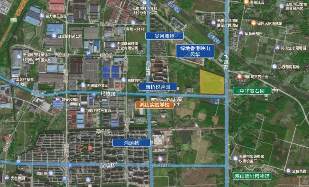地块位于鸿山街道,是连接无锡和苏州两市的黄金纽带。紧邻飞凤快速路,可顺畅连接金城快速路,通达无锡全城,出行快捷无阻。邻近中华赏石园,伯渎河、梁鸿国家湿地公园、吴文化博览园环伺,形成了无可复制的原生态历史文化景观和人文风情。