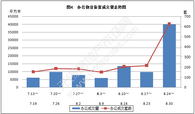 本周办公物业备案成交量和套数分析