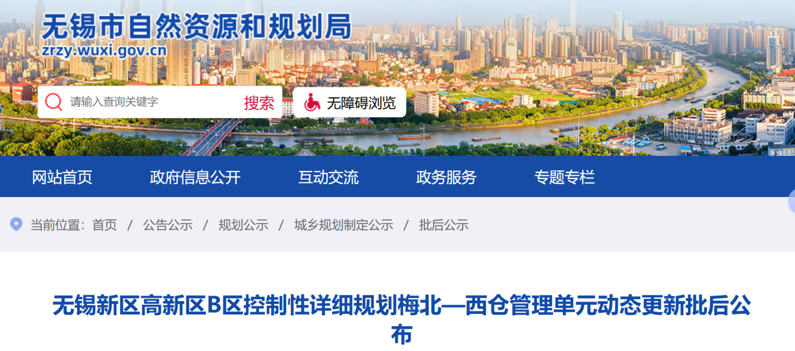 02、无锡新区高新区B区控制性详细规划梅北—西仓管理单元动态更新批后公布