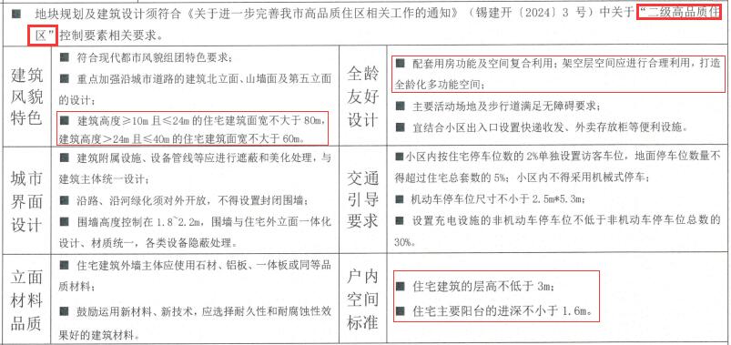 地块按照“二级高品质住区”打造,建筑高度≥10m且≤24m的住宅建筑面宽不大于80m,建筑高度>24m且≤40m的住宅建筑面宽不大于60m。
