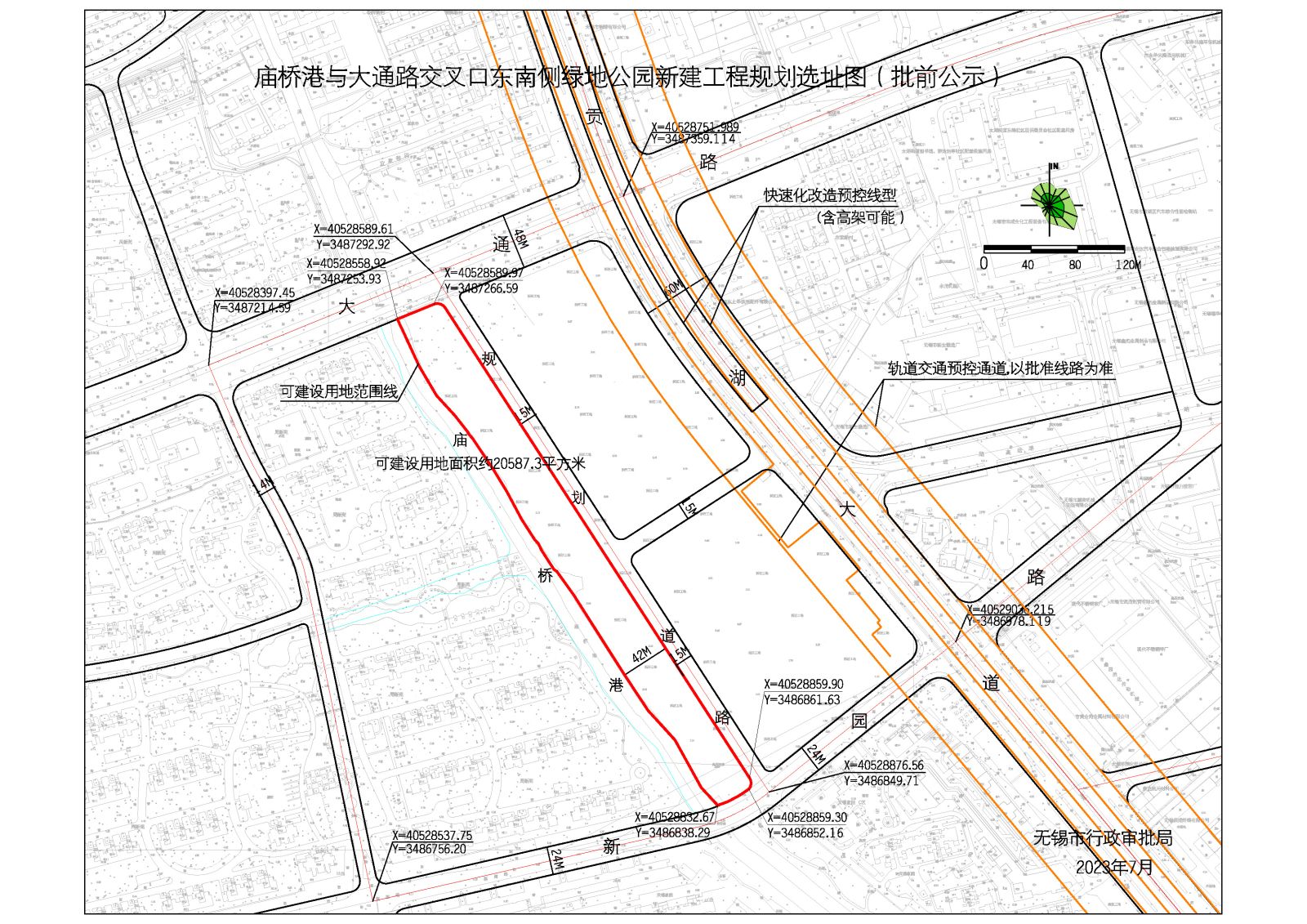 附:庙桥港与大通路交叉口东南侧绿地公园新建工程规划选址图(批前公示)