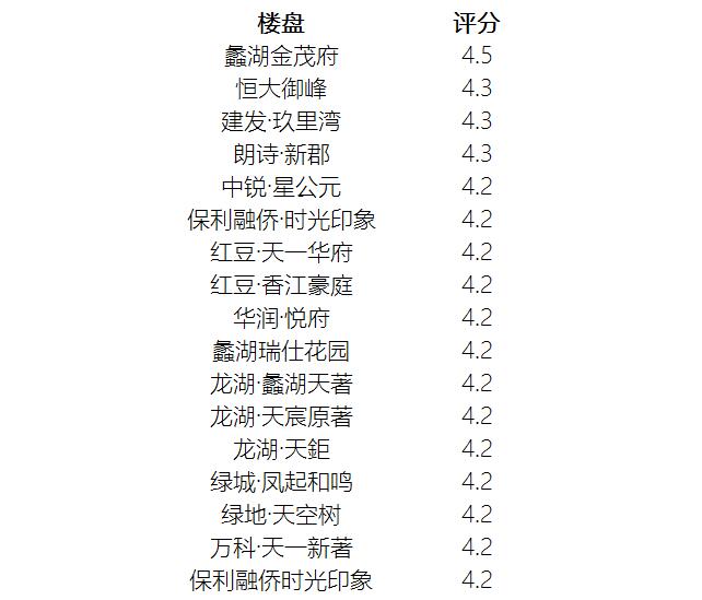 ...(同评分楼盘排名不分先后)