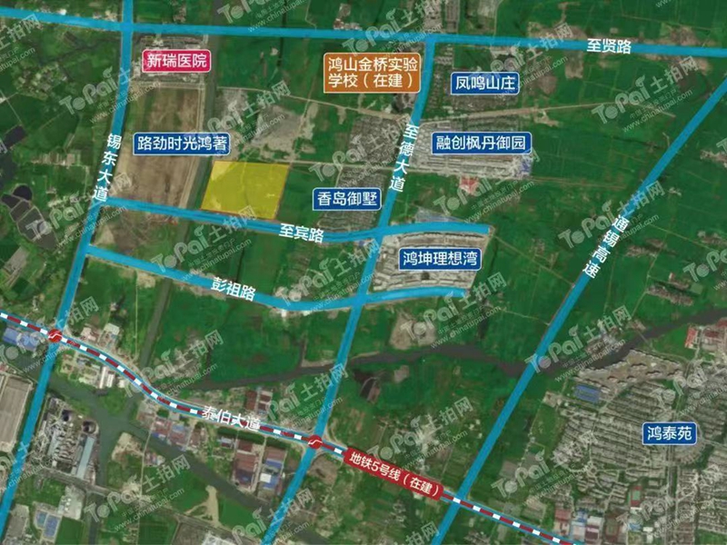 地块位于鸿山新市镇板块,近鸿山国际新城吴文化广场,北邻新瑞金医院。地块周边致礼路、至宾路分布,到鸿山镇中心和梅村都很方便。作为新市镇板块,公建配套处于发展期,生活消费以周边已交付小区的底商为主,鸿山金桥实验学校在建、医疗配套以新瑞医院为主。