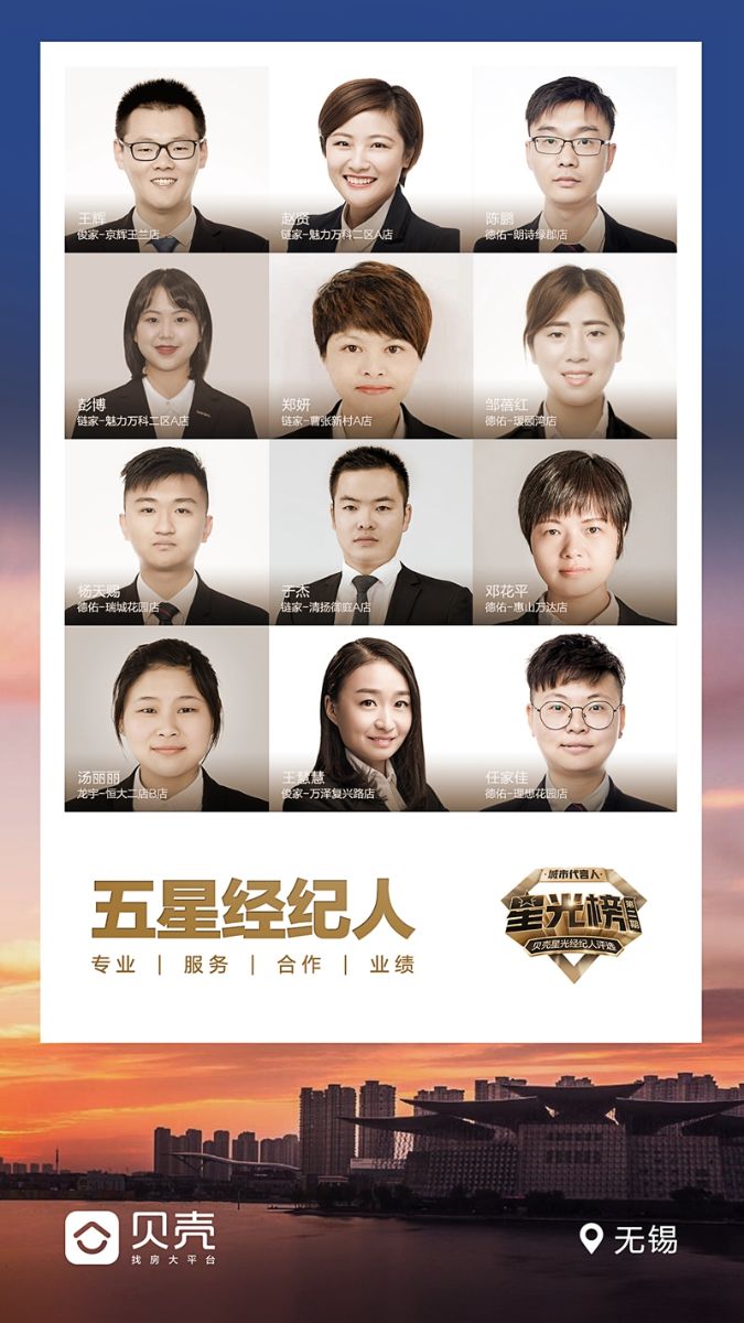 赵贤、王慧慧、邹蓓红、郑妍、于杰的服务故事只是贝壳星光经纪人的缩影。不同地域和人生的房产经纪人,却有着一样的专业、热情和真诚。今年9月,贝壳找房正式上线能系统衡量经纪人专业能力和服务水平的贝壳分,这套基于经纪人的真实行为数据,通过大数据模拟算法的模型,全方位显示了经纪人综合服务能力,展现出一大批优秀的房产经纪人,而赵贤、王慧慧等人正是其中的一份子。