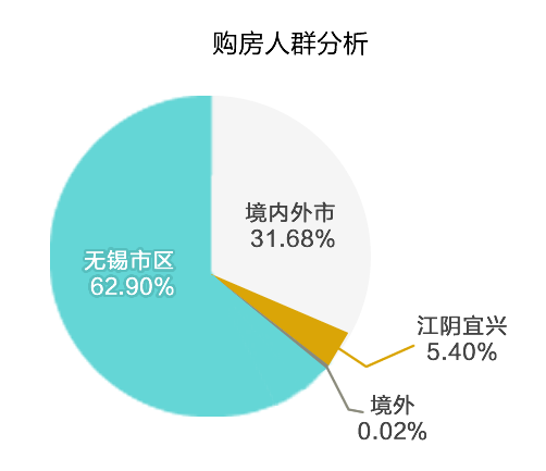 据WXHOUSE数据研报平台显示,6月份按购买对象分析,无锡市区购房所占比例为62.90%。
