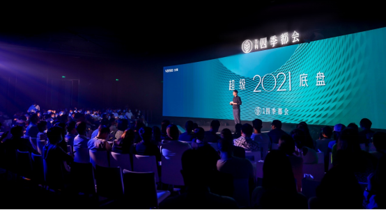 发布会尾声,无锡万科合伙人杨毅、戴玉鸿;联合国环境署-同济大学环境与可持续发展学院副院长王信;无锡日报报业集团、资深媒体人、高级经济师钱琳文;江南大学江南文化研究中心主任、教授庄若江五位特邀嘉宾一同登台,共同揭幕万科2021年度新品着作——万科·四季都会、超级宛正式发布!