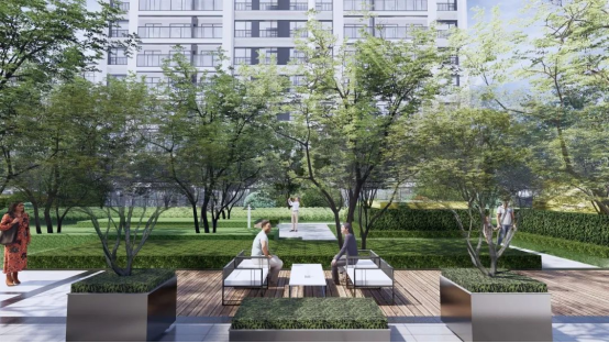 社区景观环境是人与自然关系最紧密的室外场所,应带给人体验自然、尊重自然、敬畏自然等功能。四季都会以湖岸公园式生态为基底,引入度假酒店式生活方式,四季二十四节气更替交织。不论是约5000㎡核心中庭,亦或22个宅间院区隔打造高层、洋房、叠墅,自然始终是建筑中的底色。