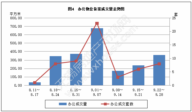 本周办公物业备案成交量和套数分析