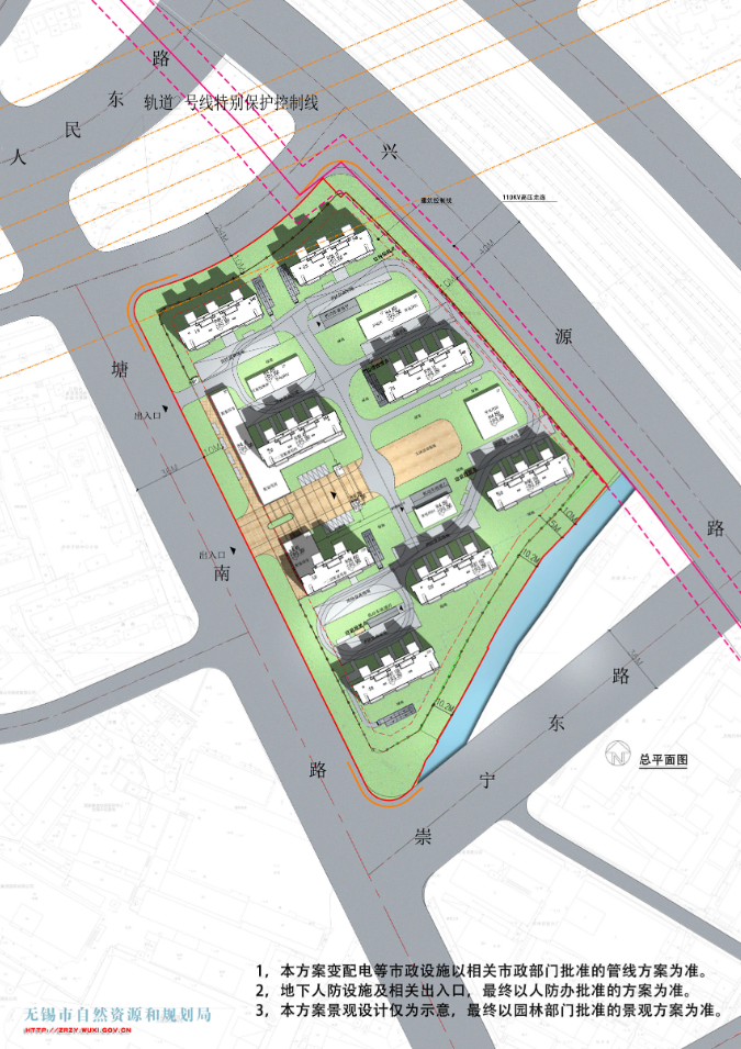 项目位于梁溪区塘南路和人民东路交叉口东南侧,总可建设用地面积约3.4万平方米,用地性质为住宅用地,建设单位为江苏古运河投资集团有限公司。