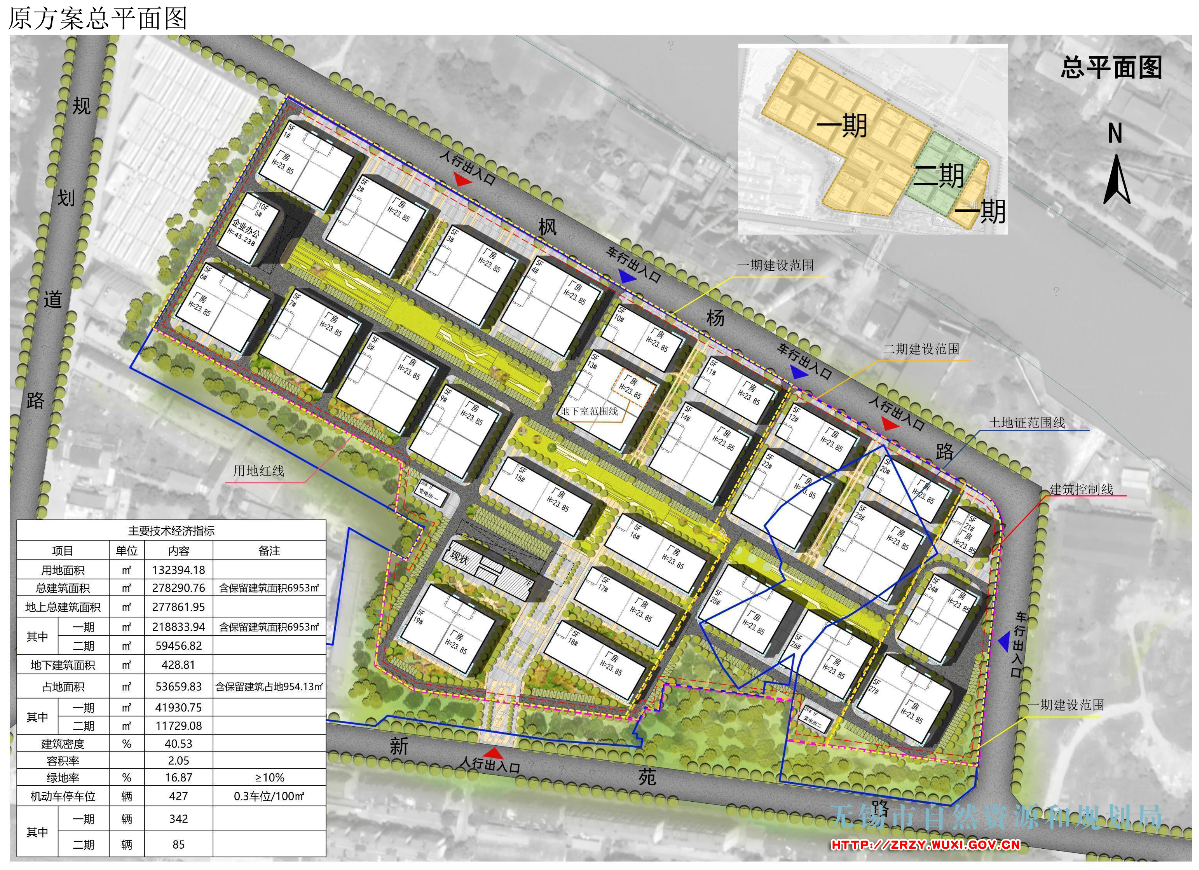 该项目位于惠山区,建设单位为无锡惠龙建设投资有限公司,洛社镇新苑路北侧,用地性质为工业用地。该地块原项目名称为无锡洛社天鸿智慧产业园项目,已于2021年4月办理规划设计方案审查,目前未建。本次建设单位拟结合项目北侧江南运河文化公园方案整体考虑,对原方案一期西侧部分进行优化,用地面积约8.47万平方米,主要调整内容为优化总平面布局,将原1栋办公楼及17栋厂房,调整为21栋厂房、5栋办公及配套用房、地下室等,同时优化了交通组织及建筑单体立面造型,符合规划审批要求。