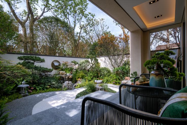 同时,这里也拥有极佳的观景视野。推窗见景,视野开阔无阻碍,亭台楼阁、花草树木,不多不少、恰当刚好。