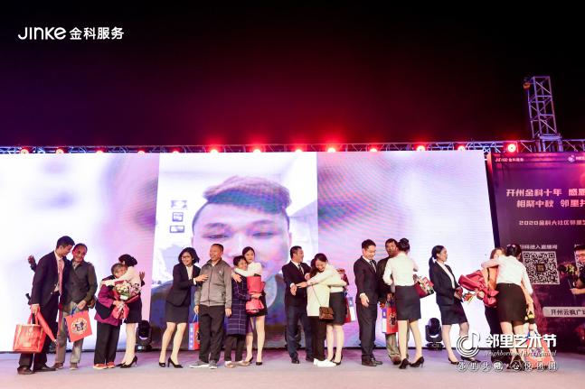 在江苏江阴的中秋邻里艺术晚会上,业主唐阿姨被邀请上台,现场视频联通了远在挪威、因疫情原因无法回家的女儿,在上千名邻居的见证下母女遥隔8000公里团圆,一声声问候说不尽母女情深的思念。在宁波,10岁的小张在6岁的小邻居的陪伴下也勇敢的走上了舞台,当着所有邻居的面,说出了对父母的感谢和祝愿。同样的情景,还出现在重庆、长沙、无锡多个城市,孩子对父母的深情祝福令现场金科业主潸然泪下,来自邻里拥抱与祝福更让人感叹金科大家庭的温情与感动,观看活动直播的数万邻居也在线上纷纷留言“想家了”。