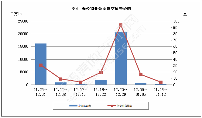 本周办公物业备案成交量和套数分析