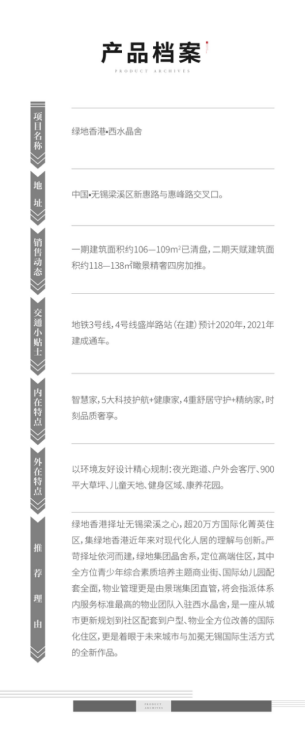 绿地香港·西水晶舍作为继西水东、天空树之后,绿地香港在无锡打造的又一新梁溪开篇力作,承袭西水东人居品质,以大运河为脉,执前瞻视野擘画新梁溪,匠筑三面环水菁英教育住区。