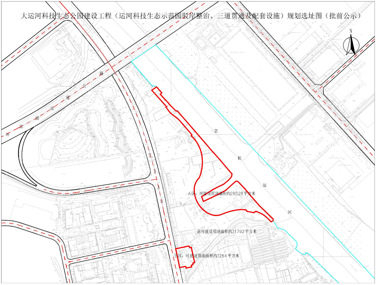 大运河科技生态公园建设工程(运河科技生态示范园驳岸整治、三道贯通及配套设施)建设项目用地预审与选址意见书批前公示