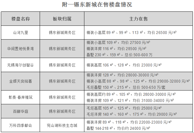 因为在此之前,锡东新城主力在售的三个项目的同类产品售价已经达到了这个水平。