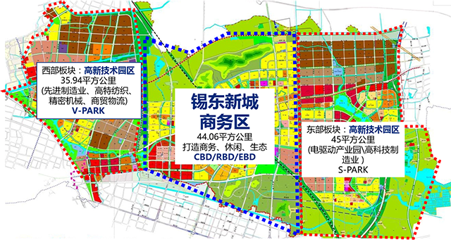 中部板块也就是锡东新城商务区,则打造商务、休闲、生态区,面积约为44.06平方公里。