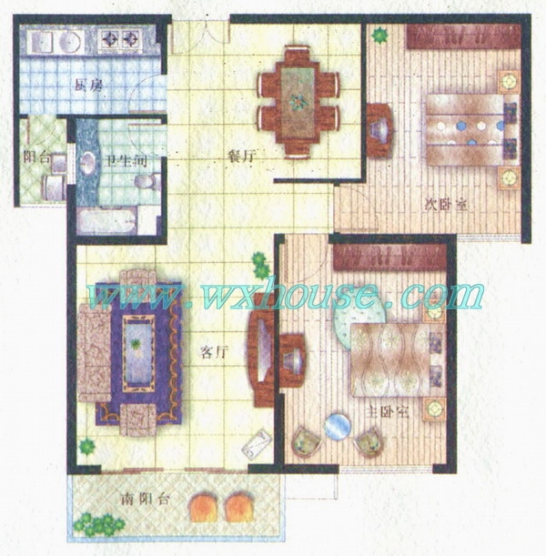 2室2厅0卫 建筑面积约:0.0㎡天鹅湖户型图2型