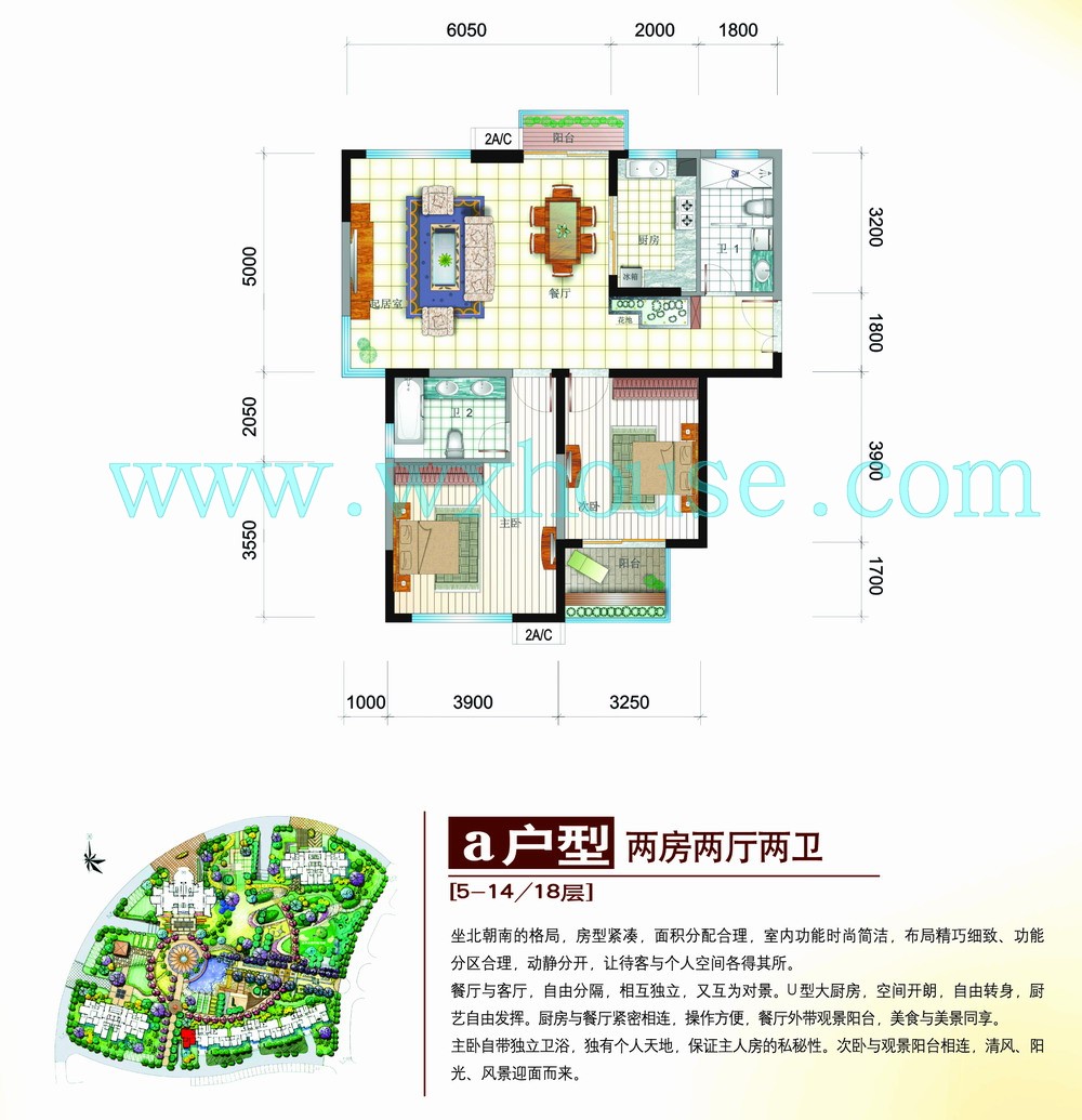 2室2厅0卫 建筑面积约:0.0㎡天鹅湖三期蓝堡a户型
