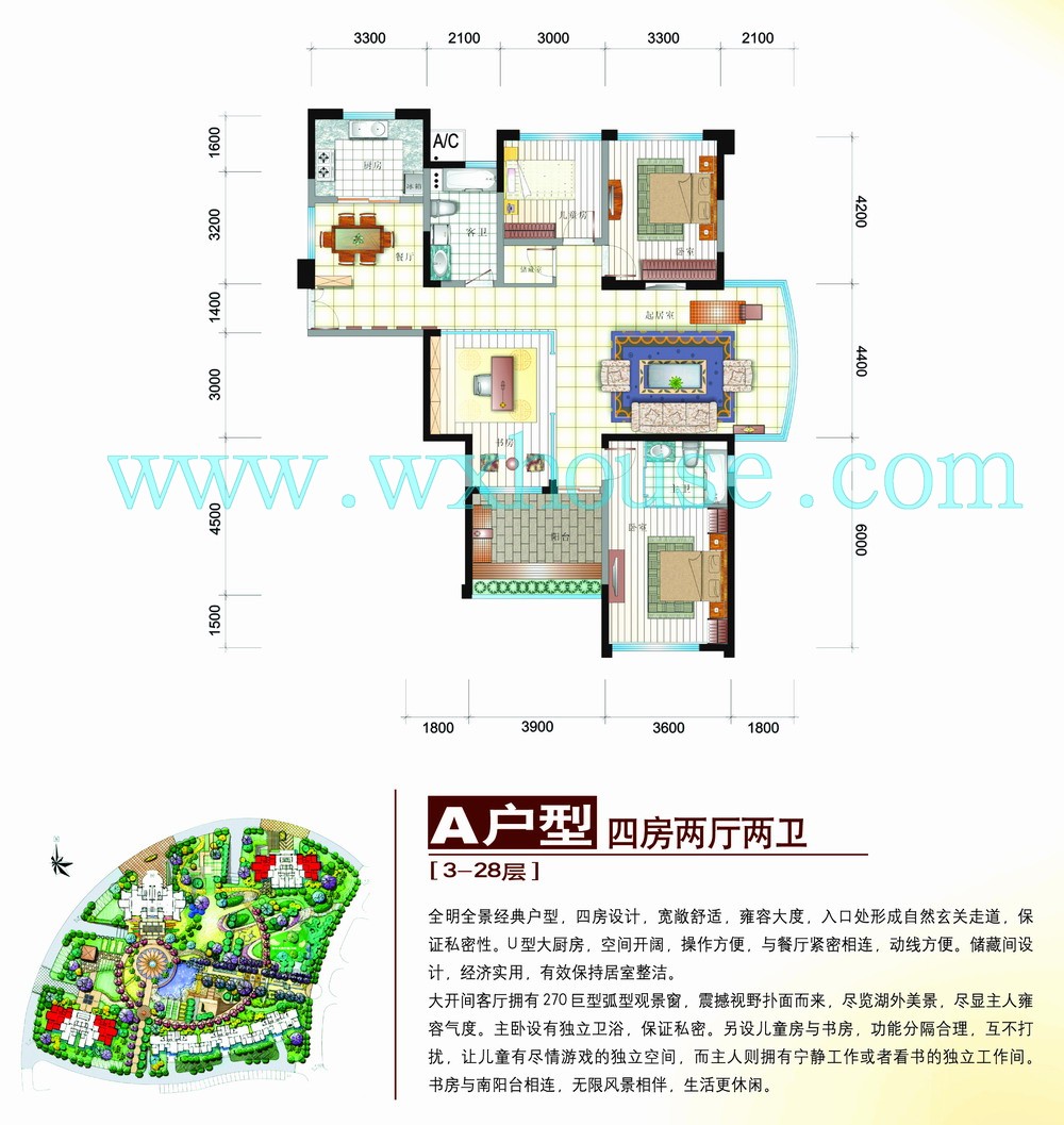 4室2厅0卫 建筑面积约:0.0㎡天鹅湖三期蓝堡A户型