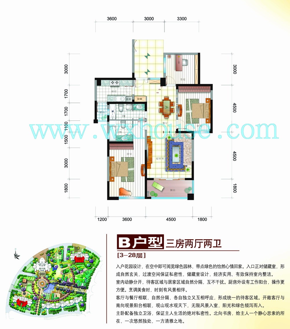 3室2厅0卫 建筑面积约:0.0㎡天鹅湖三期蓝堡g户型