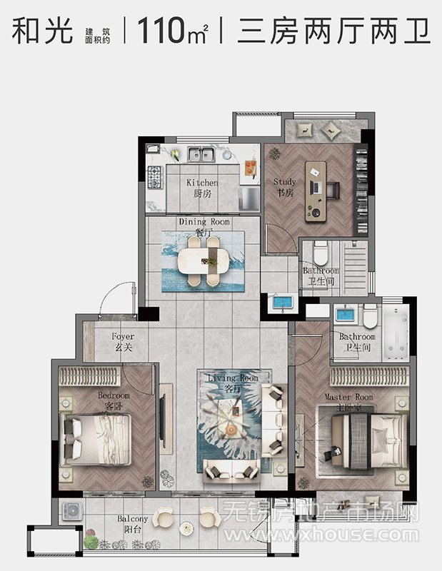3室2厅2卫 建筑面积约:110.0㎡和光户型