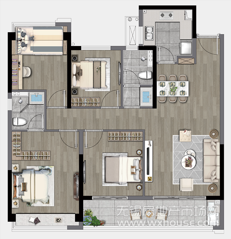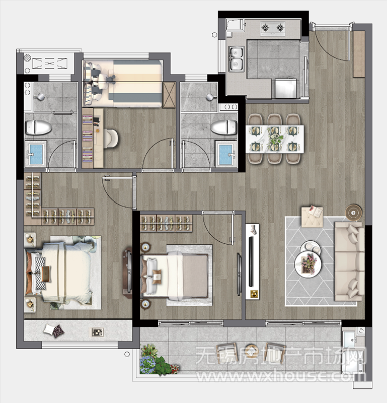 3室2厅2卫 建筑面积约:103.0㎡C1户型