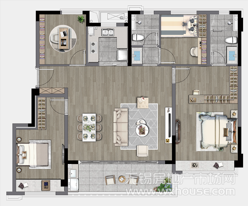 4室2厅2卫 建筑面积约:127.0㎡E1户型